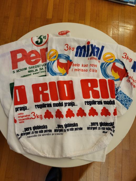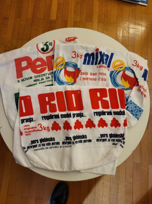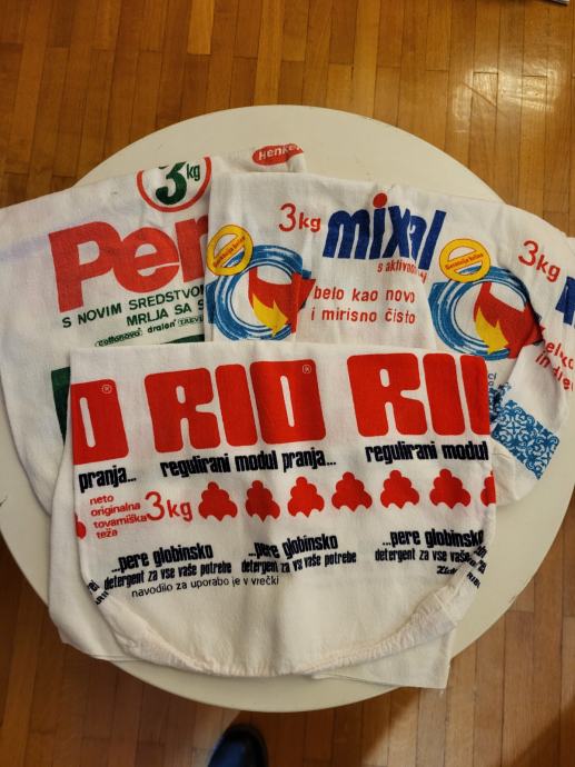 Prodam tri retro kuh. krpe za posodo v katerih se je včasih kupil prašek.