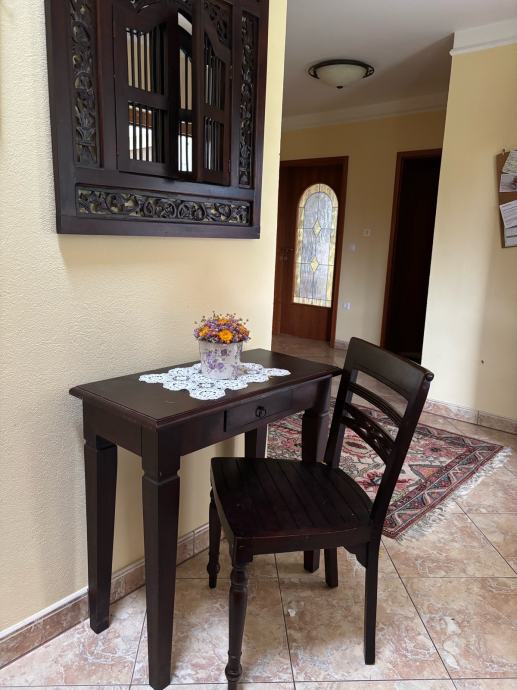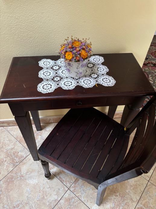 Lesena manjša miza (dimenzije 80x40 in 80cm višine) z predalčkom za manjši prostor ali kot dekorativni dodatek v kompletu z stolom