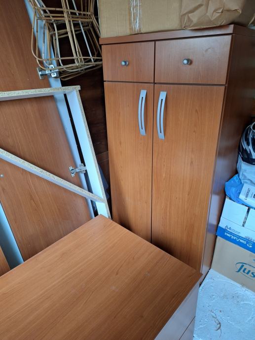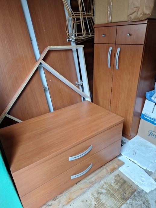Prodam dobro ohranjeno kotno predsobo komplet ali po kosih. V uporabi je bila 2 leti in nato razstavljena. Sestavljena je iz kotne omare z ogledali na vratih. Širina 105 x 105, Višina 177. Omara ima obešalni del in stran s policami. Predalnik / dva predala Širina 90 x Globina 50. Omarica / dva predalčka in dvoje vrat Širina 60 x Globina 50 x Višina 123.
