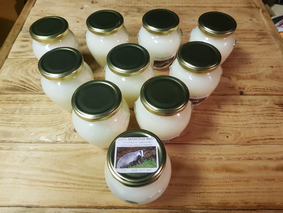 Prodam 100% jazbečevo mast, kuhano po edinem pravem postopku - bagniomaria (kuhanje na vodni pari, ne na direktnem ognju), da se ohranijo vsi vitamini. Pakirano v 50, 100ml ali 200ml kozarčke.
