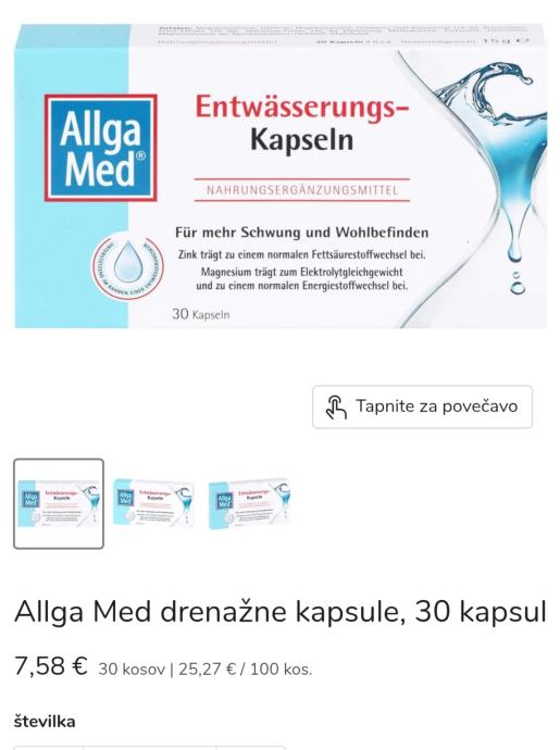 Prodam kapsule za odvajanje vode z brusnicami, jabolčnim kisom in koprivami.Kupljene v lekarni(Nemcija)So v prosti prodaji.