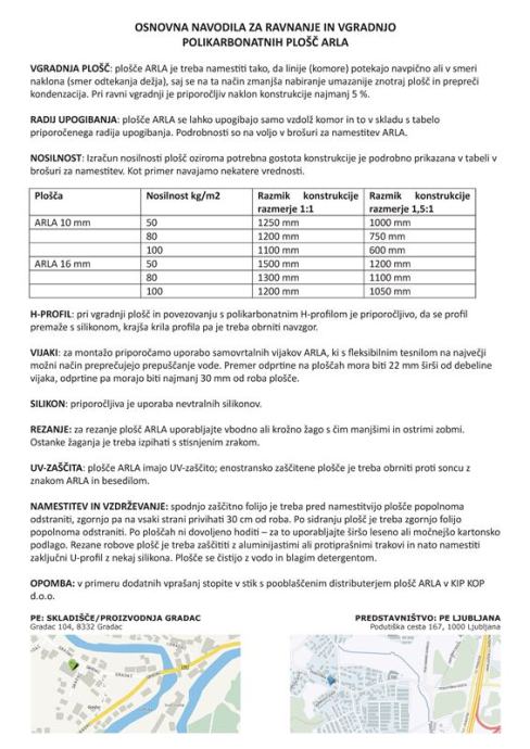 Ponudba polikarbonatskih plošč je informativne narave za nakup blaga na naslovu prodajalca KIP KOP d.o.o., Gradac 104, 8332 Gradac.