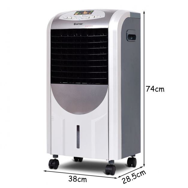 Uporabniku prijazen dizajn: Zahvaljujoč LCD plošči, ki priročno prikazuje nastavitev hitrosti in časa, lahko preprosto upravljate vlažilnik. Za še višjo raven udobja je priložen tudi daljinski upravljalnik za takojšnjo uporabo. Hladilnik zraka lahko poljubno postavite v prostor in ga upravljate od kjer koli. Hkrati je velik 7L rezervoar za vodo odstranljiv, kar omogoča enostavno čiščenje, njegova velikost pa zagotavlja dolgotrajno hlajenje in vam ga ni treba pogosto polniti.