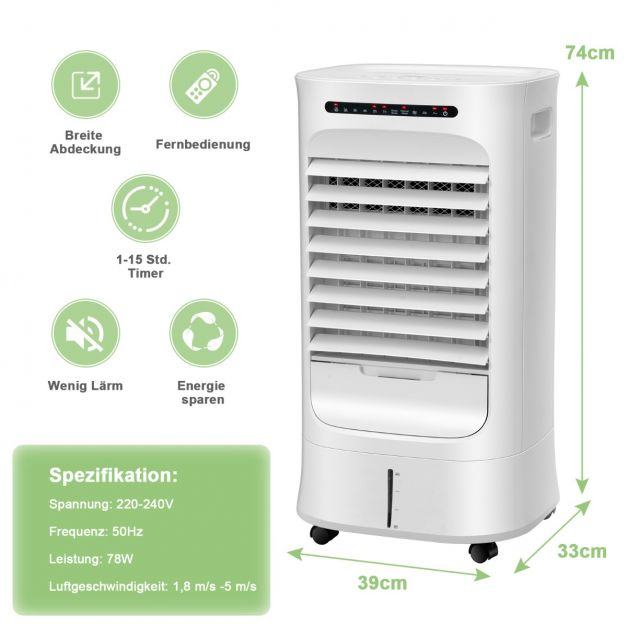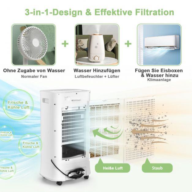 Večnamenski grelec in hladilnik zraka: klimatska naprava, opremljena z vsestranskimi funkcijami, deluje kot grelec, hladilnik zraka, vlažilec in čistilec zraka. Vse vaše potrebe izpolnjuje ta stroj. Znižuje temperaturo z izhlapevanjem. Pozimi deluje kot grelec, kar pomeni, da imate vedno zagotovljeno optimalno temperaturo, idealno za dom in pisarno.