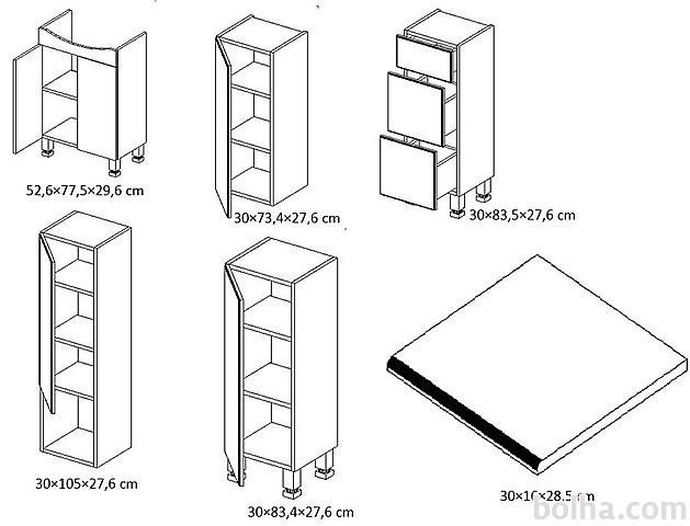 Kopalniški blok BALI je prostoren in ima elegantno, klasično obliko. Kopalniški sestav bo ustvaril prijetno atmosfero in estetski izgled v vaši kopalnici. Če želite maksimalno izkoristiti svoj prostor in se zraven ne odpovedati moderni kopalniški opremi, je kopalniški blok Bali idealna izbira za vas. Narejen je iz visoko kvalitetne plošče MDF in oplemenitene iverne plošče. Fronte (vrata omaric) so narejene iz lakirane MDF plošče (16 mm), stranice omaric pa so narejene iz oplemenitene iverne plošče (16 mm). Ročaji so kovinski in omarice imajo nastavljive nogice.Kaj je MDF?MDF plošče so visoko kvalitetne, homogenost in stabilnost omogočata neposredno lakiranje. Zaradi svoje odpornosti se lahko poleg običajne uporabe za izdelavo pohištva, obdelane MDF plošče uporablja tudi za kopalniško pohištvo, saj so odporne na vlago.ELEMENTI KOPALNIŠKEGA BLOKA Z DIMENZIJAMI:Omarica pod umivalnikom (š:52,6×v:77,5×g:29,6 cm)Vključen je tudi umivalnik FUN (š:60×v:18×g:45 cm)Omarica levo zgoraj (š:30×v:73,4×g:27,6 cm)Omarica levo spodaj (š:30×v:83,5×g:27,6 cm)Omarica desno zgoraj (š:30×v:105×g:27,6 cm)Omarica desno spodaj (š:30×v:83,4×g:27,6 cm)Polica (š:30×v:16×g:28,5 cm)Barva:BelaMaterial: Lakirane straniceMDF (16 mm)oplemenitena iverna plošča (16 mm) V vseh sestavih je vključen umivalnik FUN, ki je narejen iz konglomerata (zmes kamnin)!V primeru, da za izdelek obstaja več variant (dimenzija, material, barva,..), objavljena cena velja za najcenejšo varianto izdelka. Vse podrobnosti o izdelku in aktualne cene si oglejte tukaj.Več podatkov si oglejte na tej povezavi...