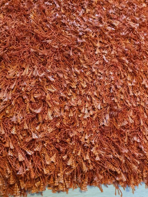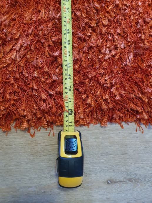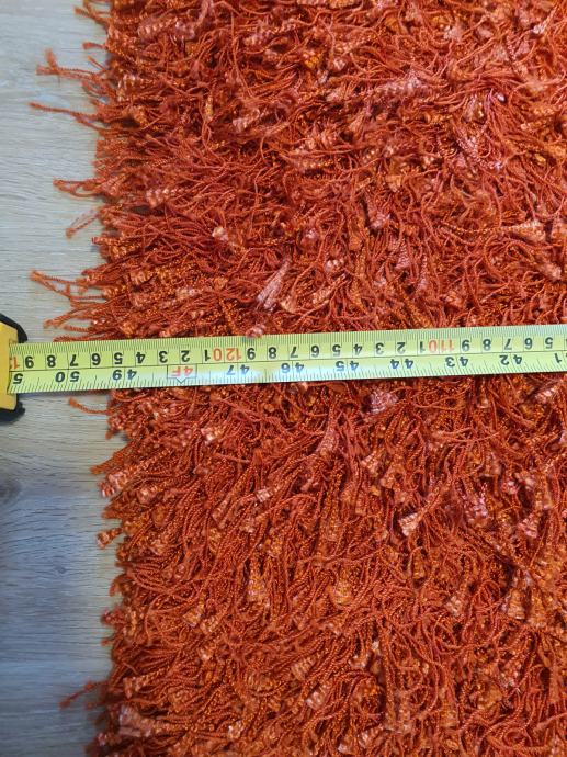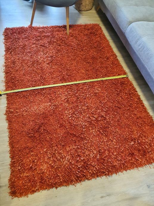 Lepo ohranjen oranžen kosmat tepih, dimenzije 125 x 185 cm.