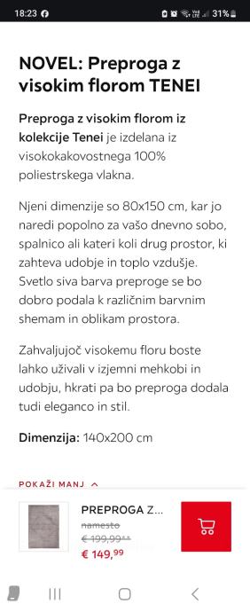 Preproga-KOSMATINEC kupljena v lesnini rabljena odlično ohranjena dimenzije 140X200 sive barve