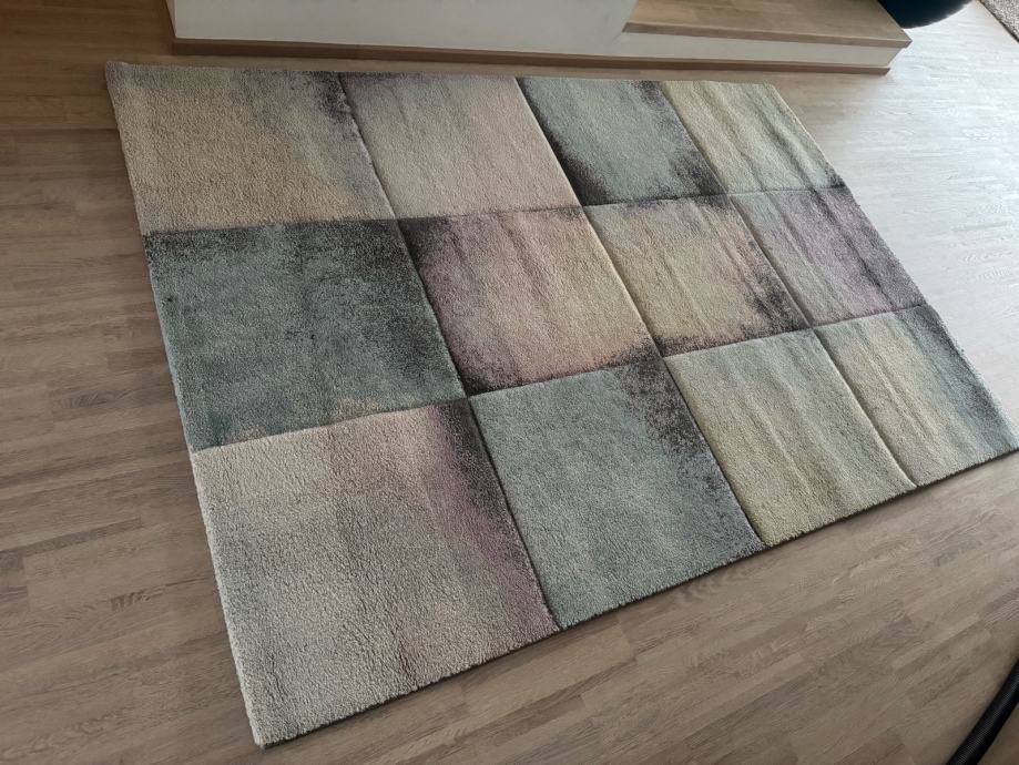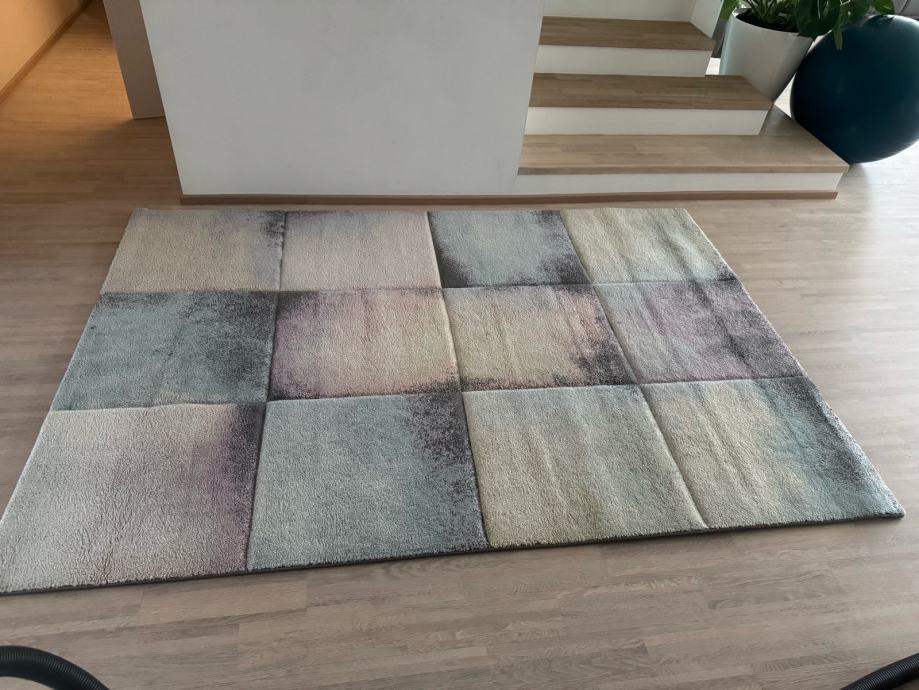 Kvalitetna preproga modernega dizajna v pastelnih barvah.