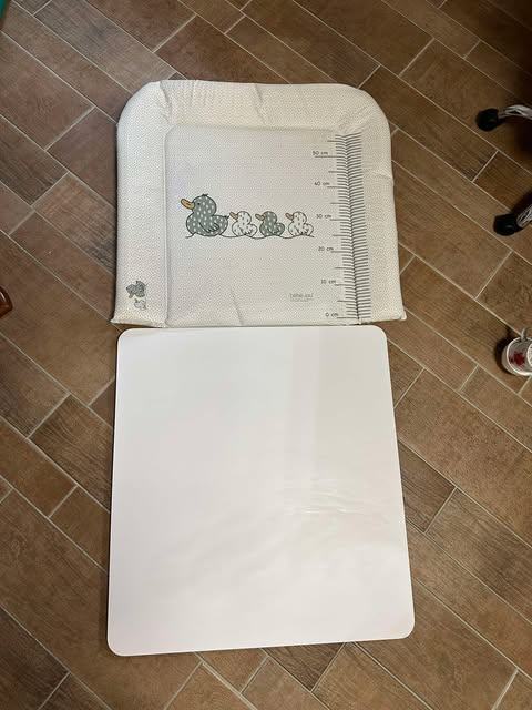 Prodam belo desko - nastavek za previjalno blazino (77x72), izdelano po meri, dobro ohranjena. Zraven podarim mehko previjalno blazino.