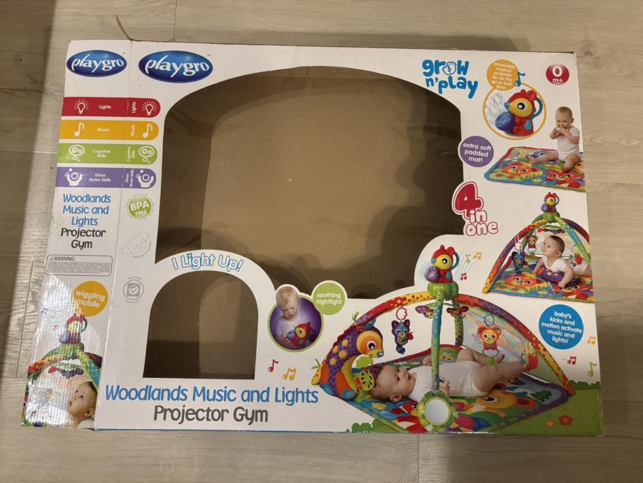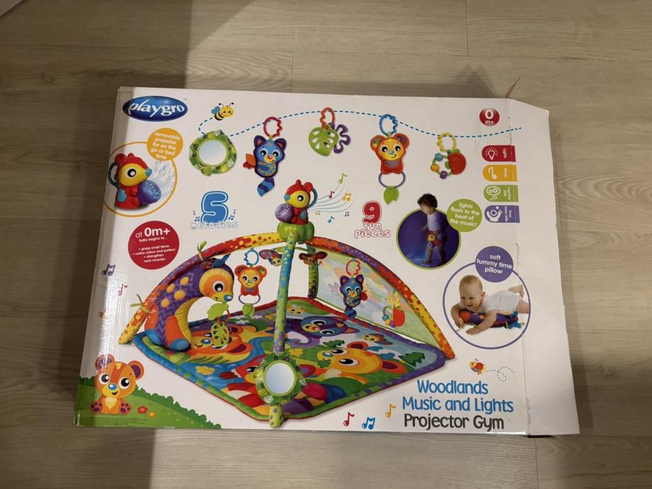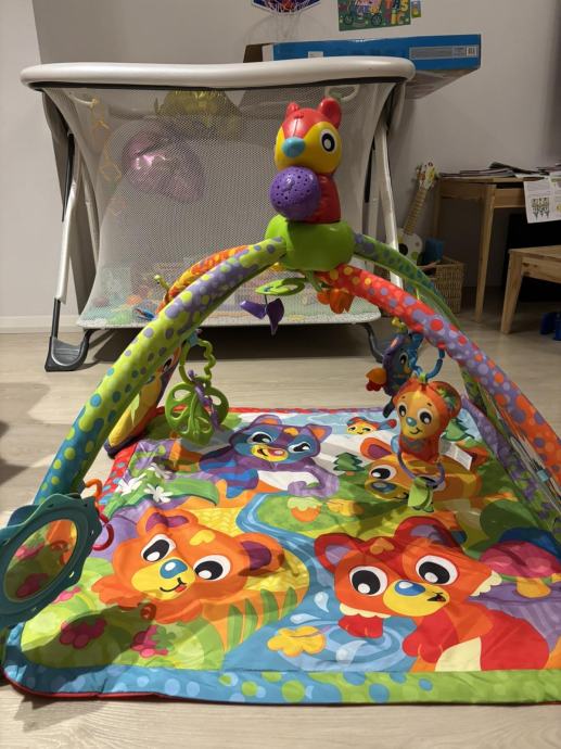 Prodam igralno podlogo z lokom na katerem visijo plisaste igrace, ogledalo,grizala. Veverica žal ne dela. Znamke PlayGro. Ivamčna Gorica.