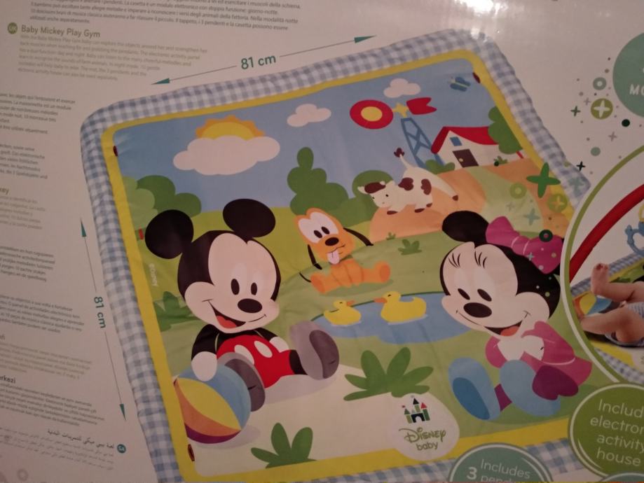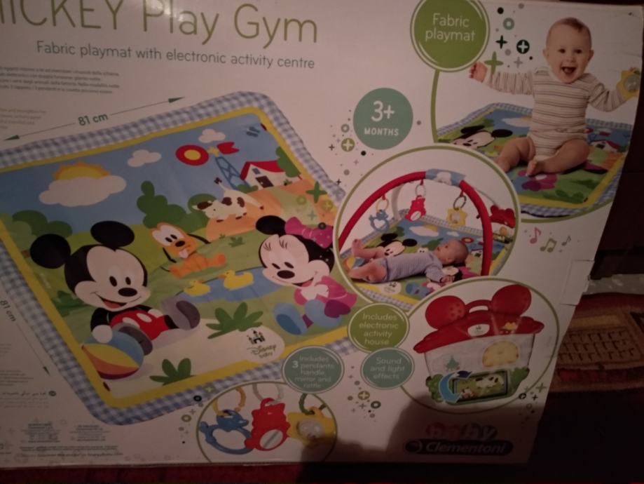Prodam lepo ohranjeno podlogo za igranje. Ima 3 visece igracke, od teh ena cinglja, ena ima ogledalo in ena je mišljena kot ropotuljica. Ima tudi modul, ki vključuje razne melodije . Original embalaza