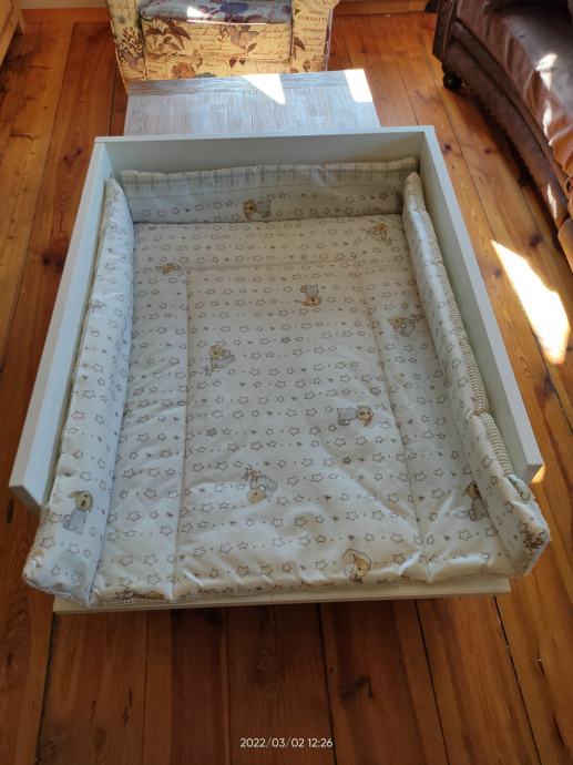 Priložena je po meri narejena kvalitetna podlaga s stranskimi robovi, ki se prilega previjalna mizici