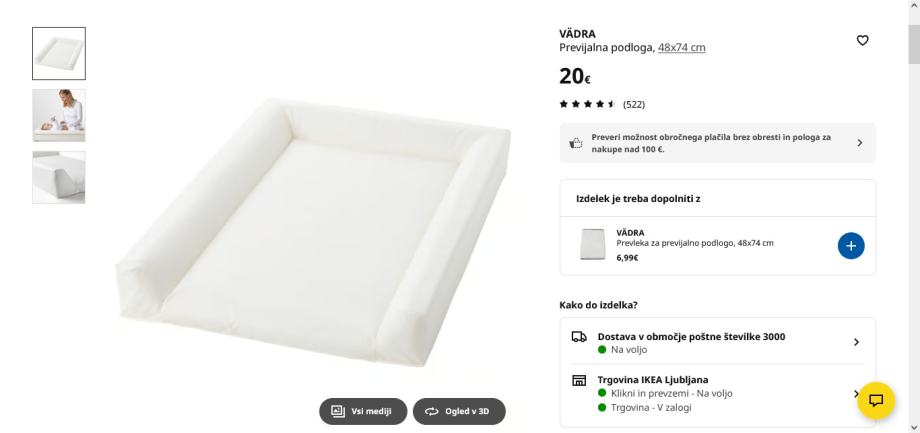 Podarim zraven mehko podlago in 2 pralni prevleki (bombaž, barva bela)