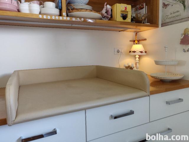 Previjalna podloga narejena po naročilu. Oblečena v bež usnje v odličnem stanju.