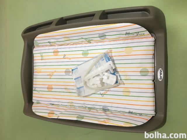 Mogoča je montaža direktno na otroško posteljico ali pa na pralnem stroju/mizi. Z nosili in navodili za uporabo.