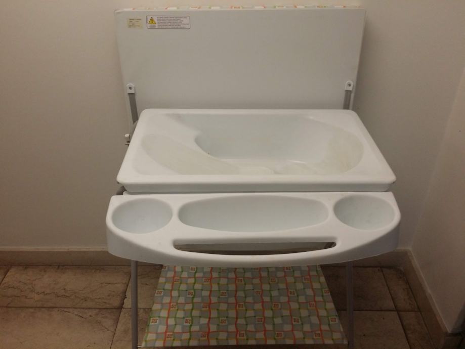 Prodam previjalno mizico v kombinaciji z banico za kopanje ali umivanje, z odlagalno poličko pri tleh in posebnim predalčnikom za krpo, milo, šampon, kremico.... Nam je v tistih mesecih služila najboljše, kar se da.