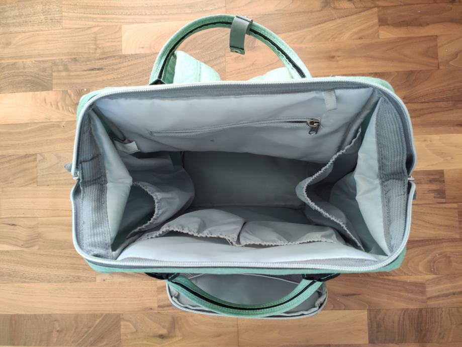 Prodamo rabljen a dobro ohranjeno previjalni nahrbtnik / torbo za otroške stvari. nahrbtnik ima veliko žepov kamor lahko shranite vse potrebno za otroka (plenice, mokre brisače, flaške), veliko odprtino od zgoraj za nalaganje stvari ter odprtino na hrbtni strani za hiter dostop do vsebine.
