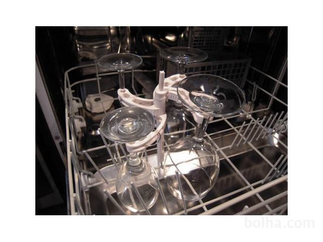 Zadeva je nova.Na držalo se lahko namesti do 4 kozarce da ne padejo med pranjem.Glej slike.