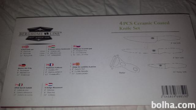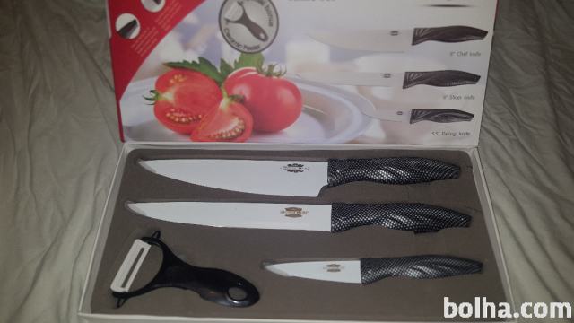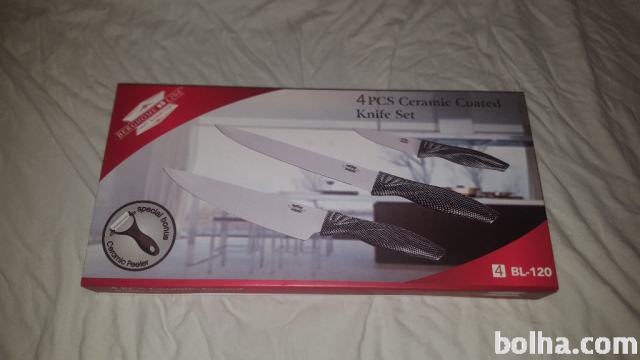 Kakovosten 4 delni set s keramiko prevlečenih nožev in keramični lupilec.