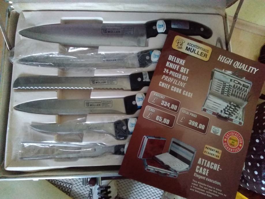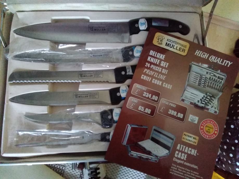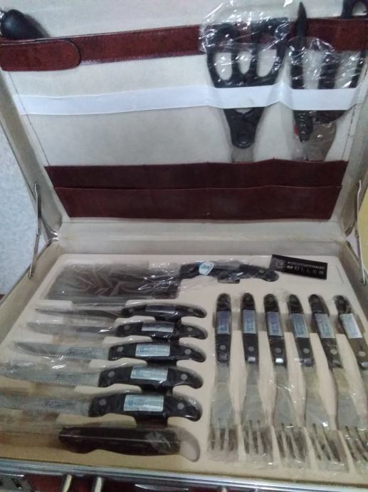 Prodam nikoli rabljen set nožev in pribora v kovčku. Prevzem samo osebno, info na mobi.