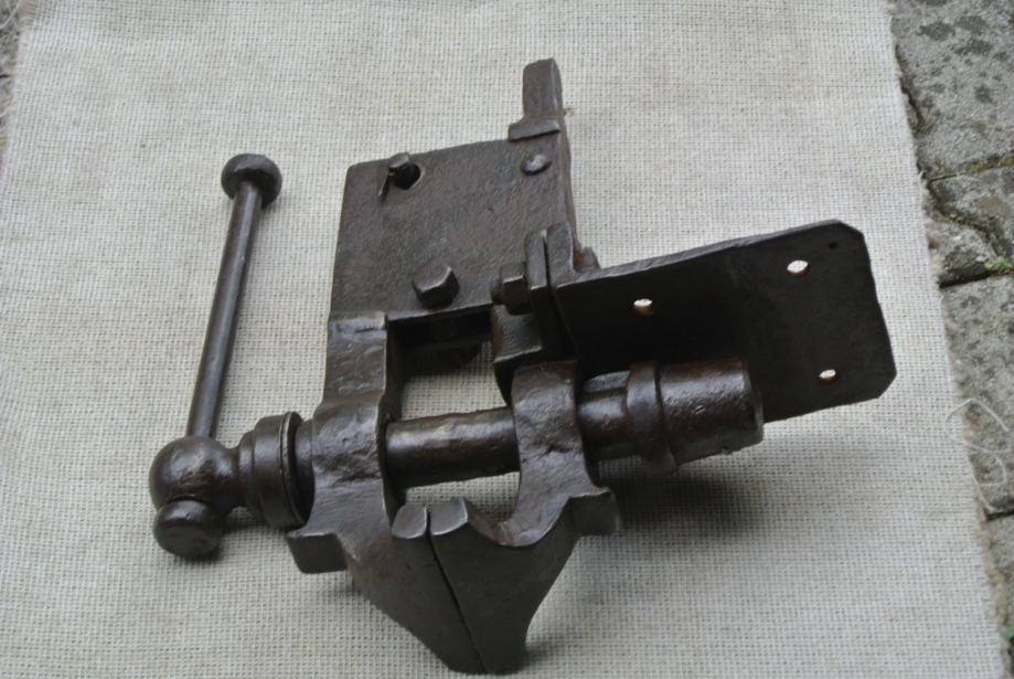 Težak okoli 5o kg, dolžine 5o cm. širine 48 cm, širina čeljusti 14 cm, lepo ohranjen in kompleten. Inf po tel 040 220227