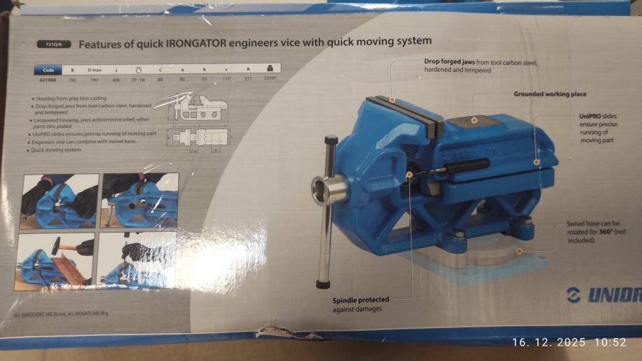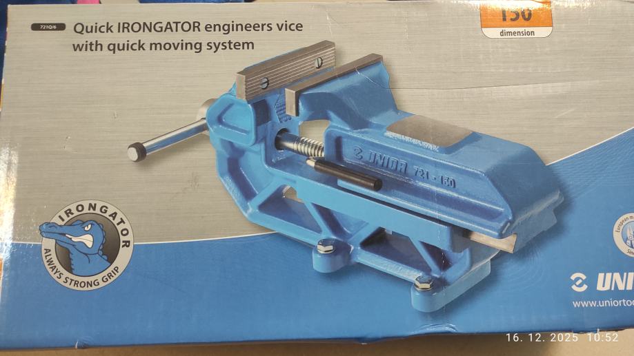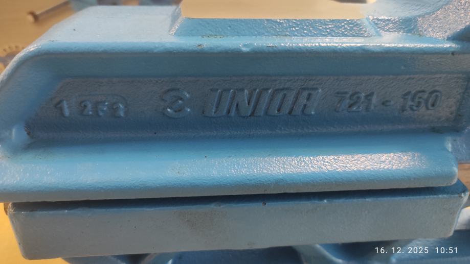 Zaradi neuporabe prodam popolnoma novi primež Unior 150 MM, še original zapakiran. Ohišje iz sive litine, lakirano, čeljusti kovane, poboljšane, iz ogljikovega jekla, protikorozijsko naoljene, ostali deli cinkani, vreteno zaščiteno pred poškodbami, možnost nadgradnje primeža z vrtljivim podstavkom. Vodila UNIPRO zagotavljajo natančen pomik gibljivega dela, možnost vpenjanja cevi.