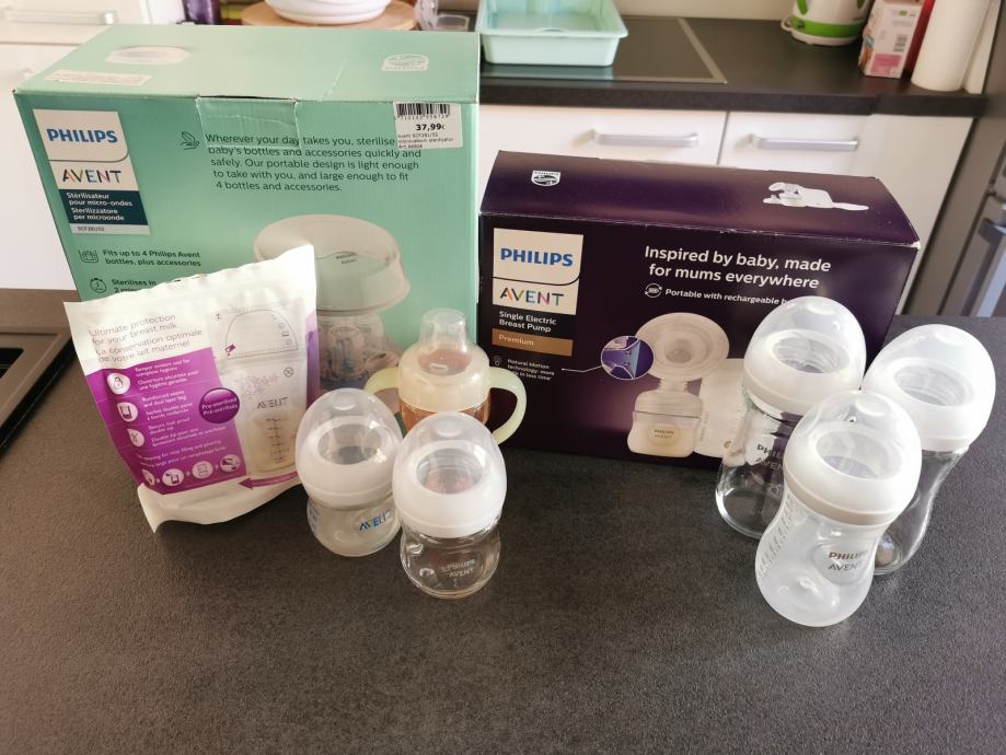 Philips Avent enojna električna črpalka + sterilizator + stekleničke