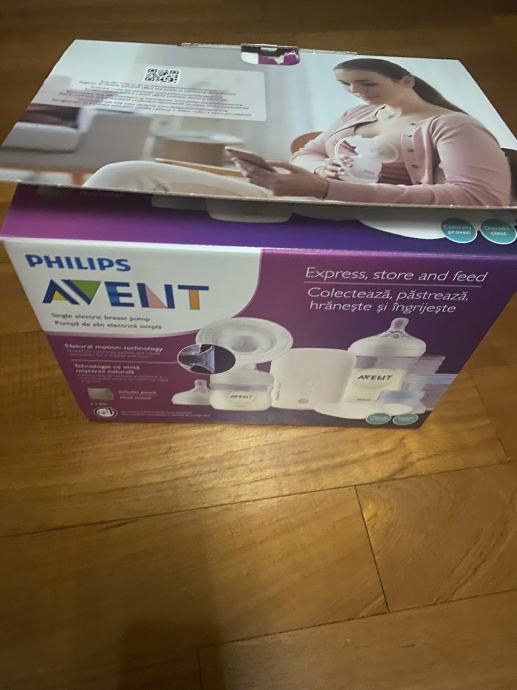 Elektricna prsna crpalka Avent, enojna, malo uporabljena, brez steklenick, s polnilcem in prirocno torbico. Originalno pakiranje.