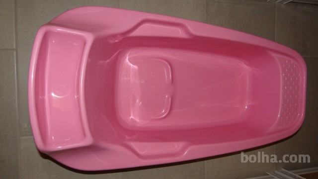 Ugodno prodam skoraj novo, malo rabljeno, prisrčno roza otroško kad. Mere: D48cm x Š25cm x V16cm. Ulito varovalo za sedenje, odlagalna polička za milo...