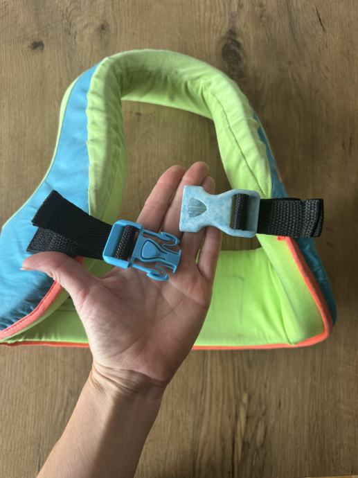 Omogoča premikanje rok in lažje učenje plavanja. Ima tritočkovno varnostno zaponk. Dobro ohranjen, barva je nekoliko zbledela od sonca, ampak povsem delujoč in brez luknjic na tkanini. Prodamo, ker ga ne potrubujemo več.