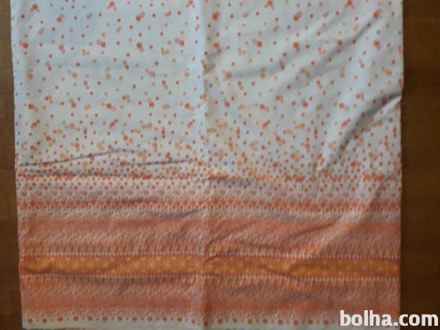 Prodam blago za posteljnino, material bombaž, oranžni vzorec na beli podlagi, dimenzije 140x560cm.