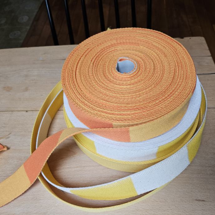 Trije različni trakovi, skupaj pribl. 10 m. Primerni za izdelavo torb, na primer.