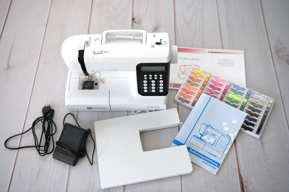 Prodam enkrat rabljen (kot nadomestilo za šivalni stroj, ki je bil na servisu) šivalni stroj Carina R-evolution 2020. Priložena je vsa originalna oprema. Stroj je še v garanciji. To je elektronski oz. računalniško voden šivalni stroj, ki meddrugim nudi tudi možnost šivanja števil in črk. Več informacij o stroju lahko najdete tukaj: