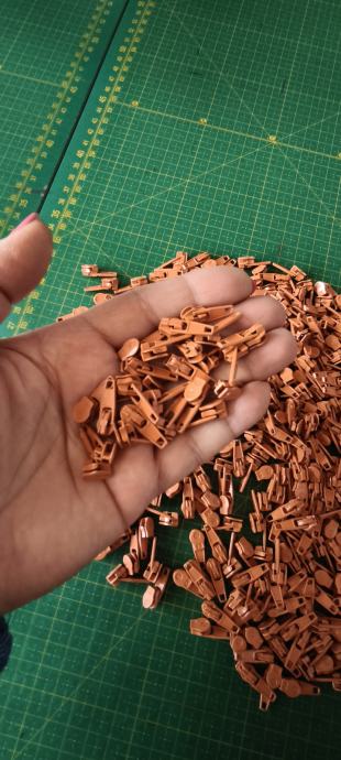 Prodam komplet 100 tekočih metrov PVC spiralne zadrge, širina 3cm in 408 kosov kovinskih ključkov za to zadrgo. Prodam le vse skupaj. V oglasu navedena cena je za vse skupaj.