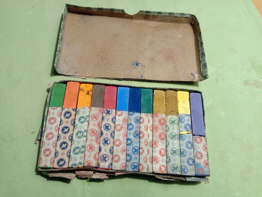 Komplet dvanajstih barvnih šolskih kred za risanje.