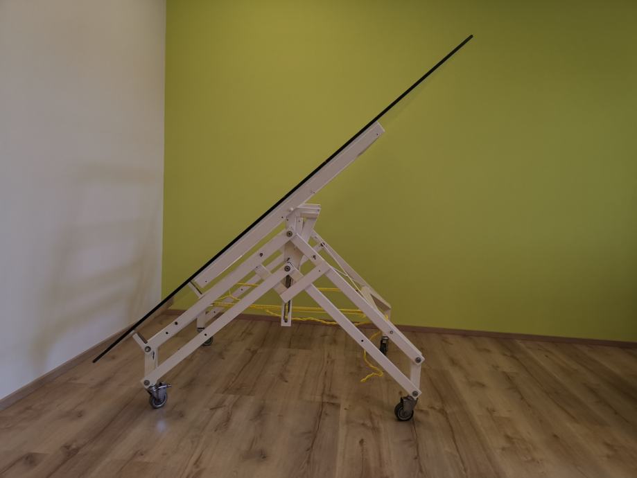 Ker je miza na kolesih se lahko zložena pokonci enostavno premika med sobami