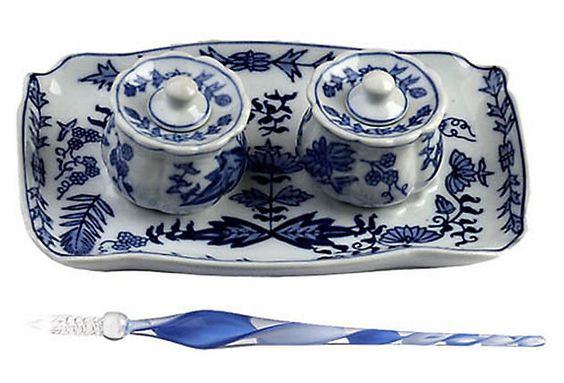 2. MEISSEN INKWELL SET: Authentic Models Writing Collection
