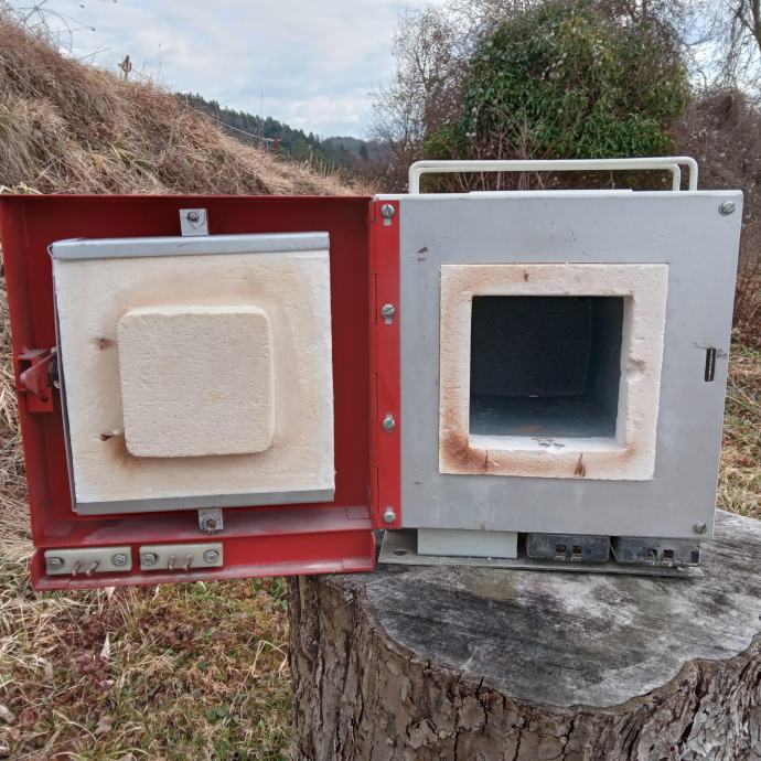 odprtina 9x9 x14cm z rezervno šamotno ploščo. Solidno ohranjena