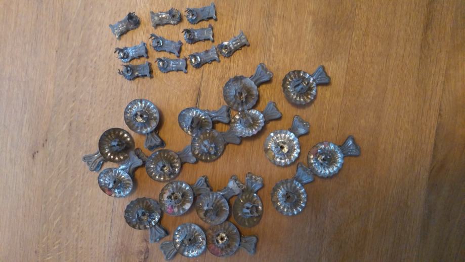 Prodam stare podstavke / priponke za sveče za na jelko. Dobro ohranjeno. Posamezno 1€ komad, komplet 25€.