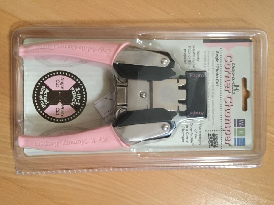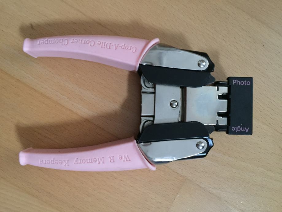 Naprava za rezanje okrasnih kotov za papir, voščilnice, albume. Z napravo lahko izrežete 2 dekorativna kota, razvidna na fotografiji.