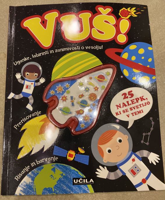 Prodam NOV ustvarjalni komplet VUŠ! za kreativno preživljanje prostega časa z ugankami, labirinti, prerisovanjem, risanjem, barvanjem in s 25 nalepkami, ki se svetijo v temi - odlična priložnost, s katero se boste lahko zabavali in odkrivali zanimivosti o vesolju!