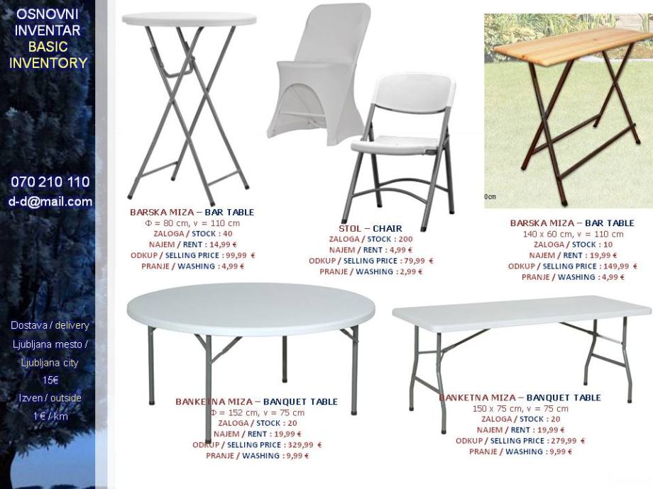 NA ZALOGI IMAMO VSE VRSTE INVENTARJA ZA PRIREDITVE: