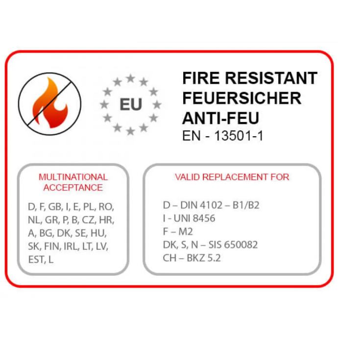 Ognjevarna certificirana PVC ponjava po evropskih standardih. Dovoljena uporaba na javnih površinah!