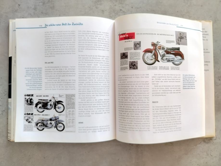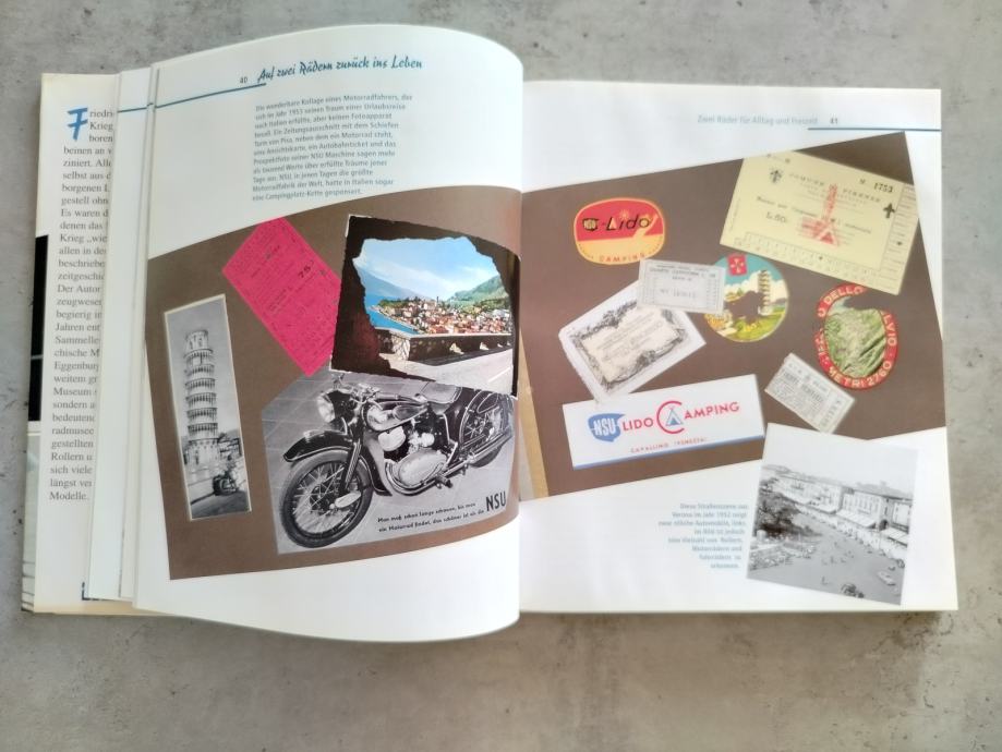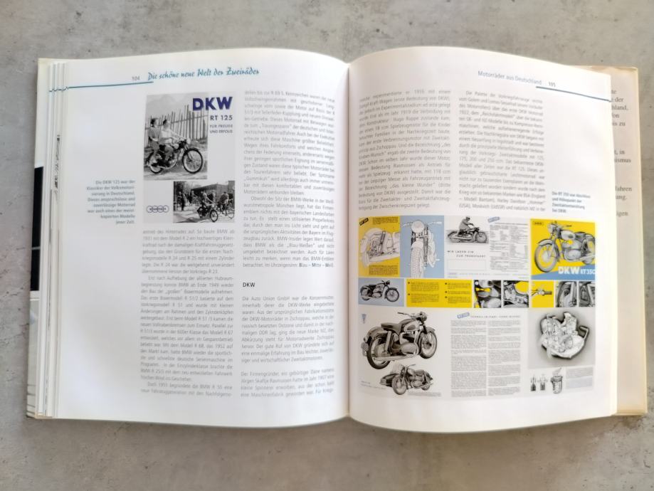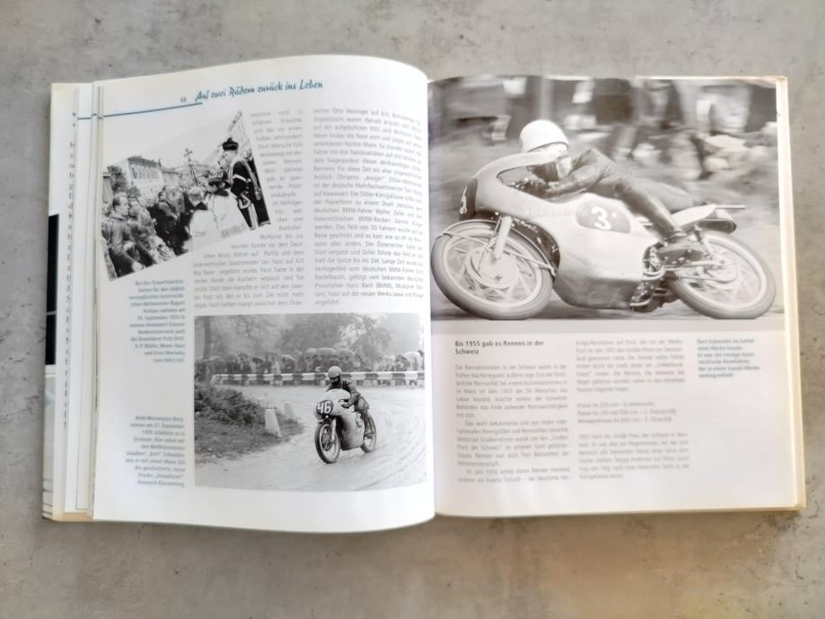 Über das Kapitel „Auf zwei Rädern zurück ins Leben“ gelangen die Leserin und der Leser in „Die schöne neue Welt der Zweiräder“, in der es um die Anfänge des Motorradsports in Deutschland geht. Schade, dass viele Firmen dieser Boom-Zeit ihre Produktion eingestellt haben, möchte man anhand der damaligen Modellvielfalt denken. Auf 22 Seiten nimmt sich der Autor der vielfältigen Firmen und Typen aus Deutschland und Österreich an. Der Autor Friedrich Ehn ist Maschinenbau-Ingenieur und war 30 Jahre lang an der Wiener Berufsschule für Kraftfahrzeugtechnik tätig. Heute leitet er das von ihm gegründete Österreichische Motorradmuseum (320 Exponate) und betätigt sich als Journalist und Fachbuchautor.