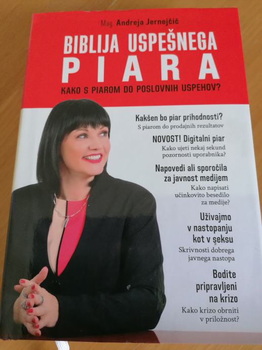 Prodam priročnik Biblija uspešnega piara - kako s piarom do poslovnih uspehov? Knjigo je napisala Andreja Jernejčič. Izdana je bila leta 2017 pri Lin & Nil in ima 388 strani. Knjiga je zelo lepo ohranjena. Knjigo je mogoče prevzeti v centru Ljubljane ali v okolici Komende. Na vaše stroške jo pošljem tudi po pošti.