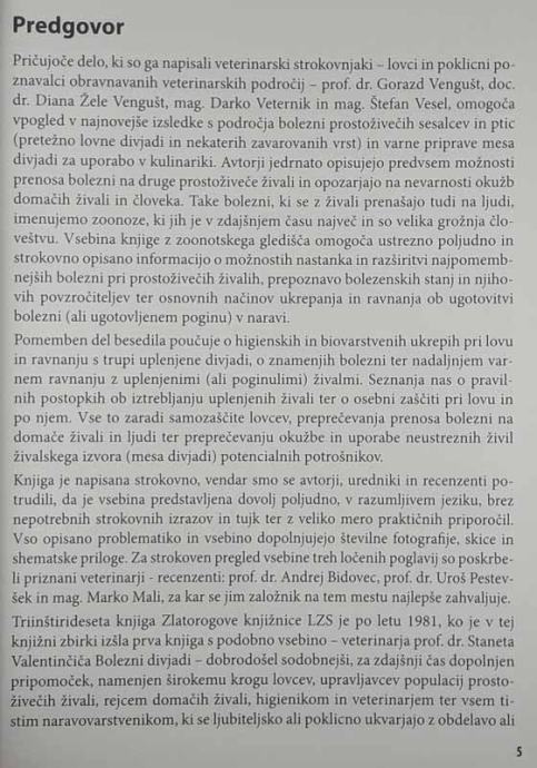 BOLEZNI PROSTOŽIVEČIH ŽIVALI IN VARNA PRIPRAVA MESA DIVJADI, Gorazd Ve