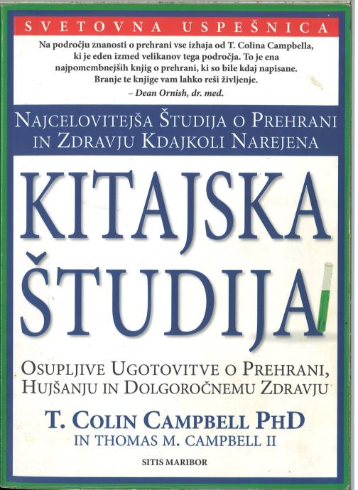 Naslov Kitajska študija : najcelovitejša kdajkoli izdelana študija o prehrani in osupljivih posledicah prehrane ter hujšanja na dolgoročno zdravje / T. Collin Campbell in Thomas M. Campbell II. ; [prevod SITIS]