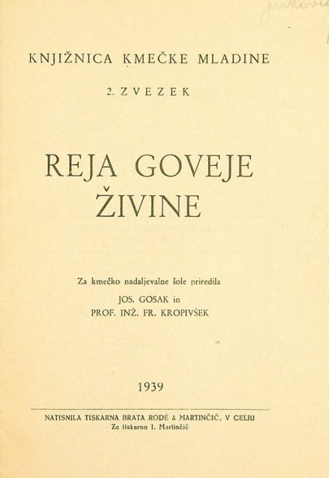 KNJIŽNICA KMEČKE MLADINE; REJA GOVEJE ŽIVINE