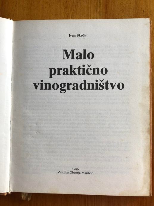 Prodam zelo dobro ohranjen priročnik z naslovom Malo praktično vinogradništvo, avtorja Ivana Skočirja. Knjiga je v trdi vezavi, ima 134 strani, izdala jo je Založba Obzorja Maribor, leta 1986.