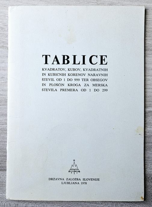 Prodam TABLICE KVADRATOV, KUBOV, KVADRATNIH IN KUBIČNIH KORENOV, DZS 1978, mehka vezava. 241